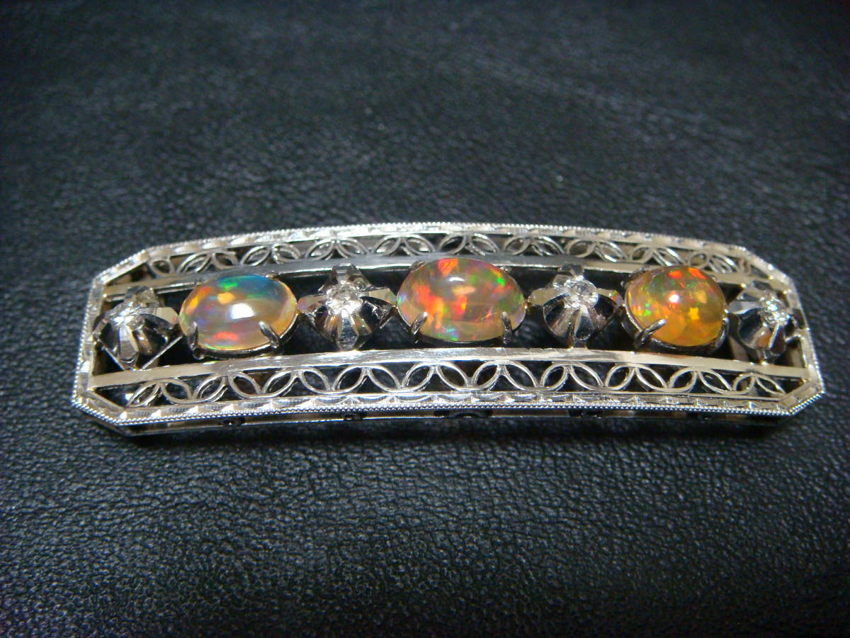 - ◇アンティーク オパール ダイヤモンド 帯留め プラチナ製 鑑別書付◇