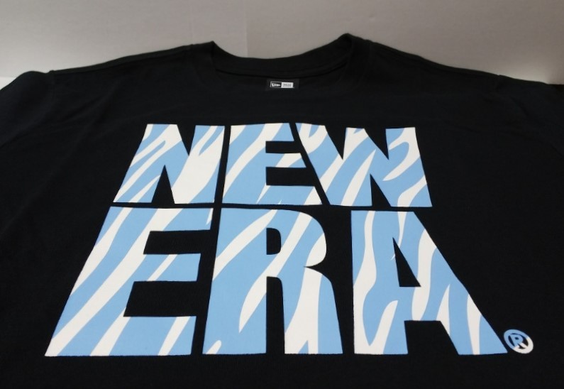 - NEW ERA ニューエラ Tシャツ 半袖 ビッグロゴ ネイビー×ブルーゼブラ フロントプリント L・身幅約53cm※未使用品/商品タグ付き/2019年製品