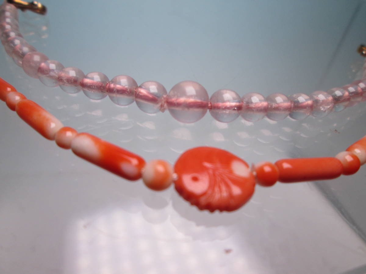 - ☆アンティーク・本珊瑚と優しいピンクガラス玉の羽織紐 2点で