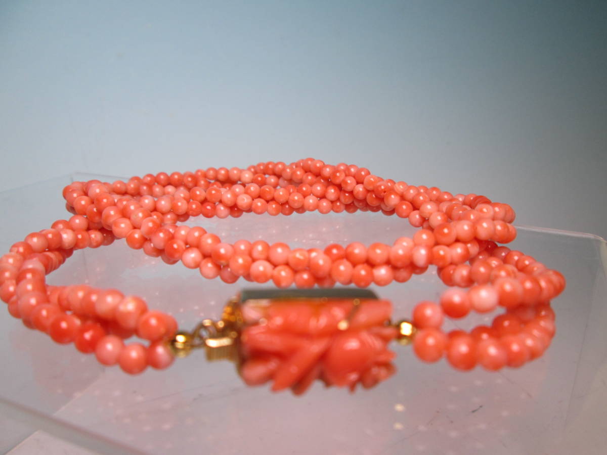 - 本本珊瑚 薔薇彫刻本珊瑚金具3連のネックレス 40g
