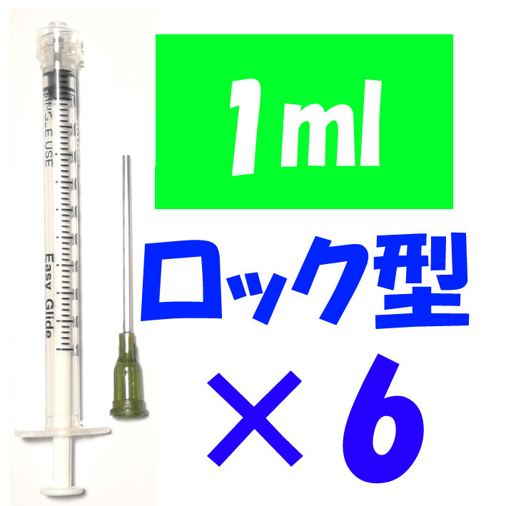 - ロック型 注射器 1ml 針付 6セット 交換 化粧水 香水 詰め替え 実験 工作 ニードル付き 計量 補充インク シリンジ プリンター