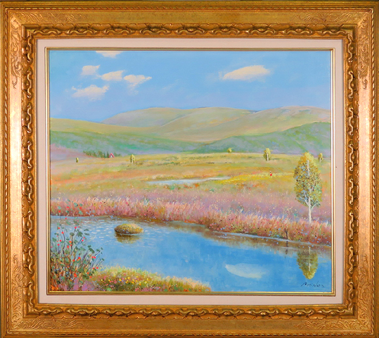 - 原良次(湿原の秋 10号)油彩画 真作 Acre