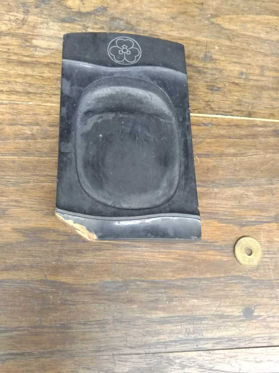 - 和硯 竹節硯 花の紋 硯サイズ【縦15.5㌢横9.5㌢高さ2.5㌢重さ800㌘】