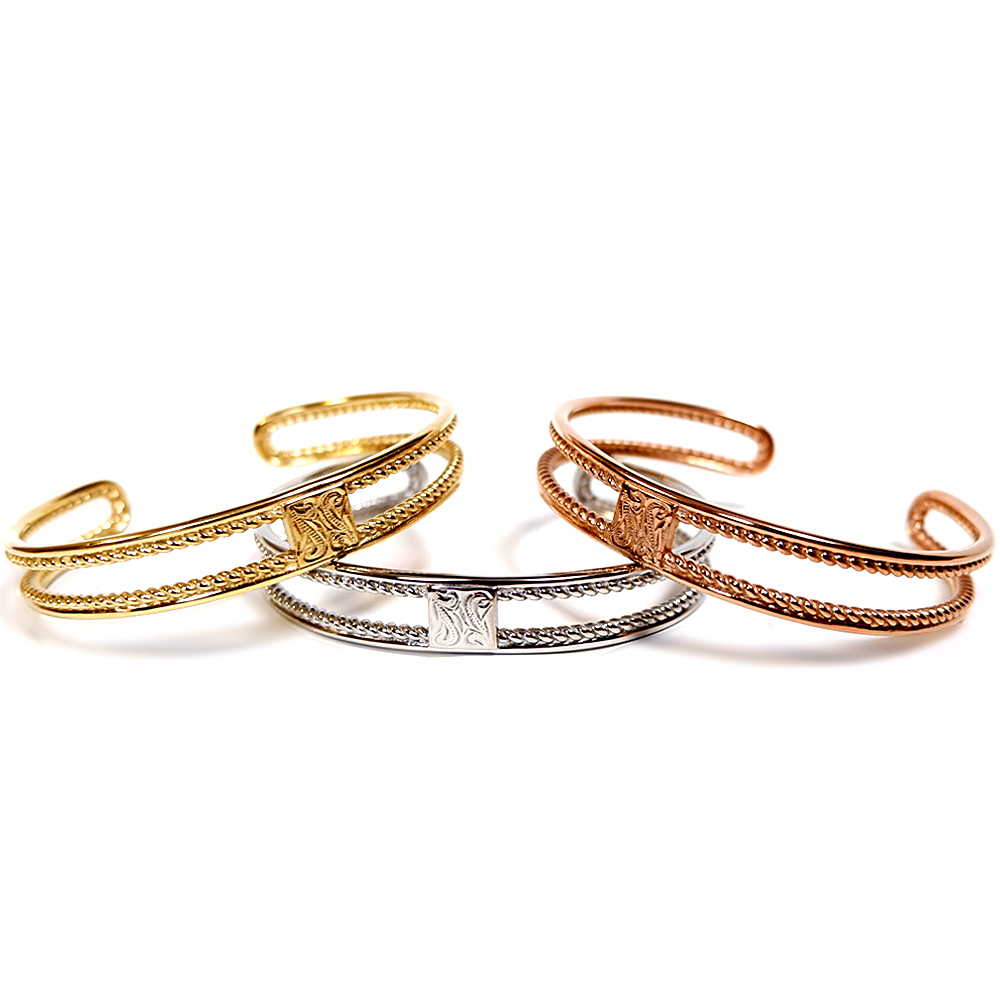 - ★人気★インスタ★ハワイアンジュエリー★金属アレルギー&温泉&海水浴OK★ステンレスバングル★シルバー&ゴールド&ピンクGD&透かし&波★