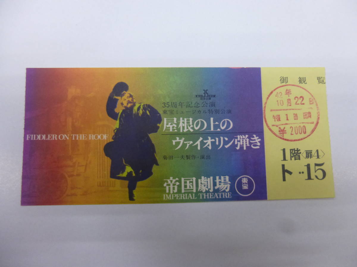 - 稀少!古い演劇・舞台 チケット半券28 ミュージカル公演「屋根の上のヴァイオリン弾き」初演 1967年 森繁久彌