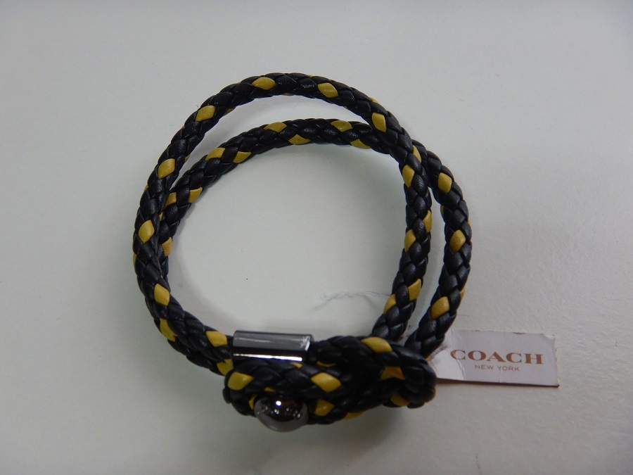 > COACH コーチ ブレスレット メンズ レザー メッシュ 革 黒 ブラック 黄色 イエロー ワンサイズ おしゃれ アクセサリー 新品