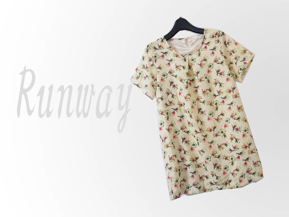 - ●新品/チュニックブラウス/ベージュ系/M/花柄/タック/レディース●f7608