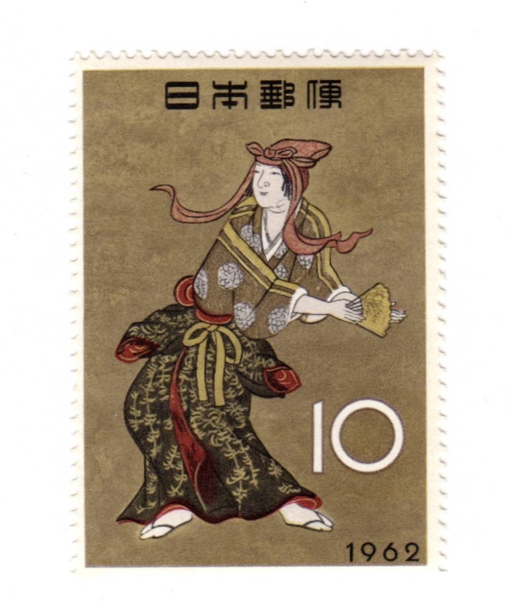 > 昭和37年1962「切手趣味週間/花下遊楽図より・狩野長信画」10円切手・未使用【送料無料】「熊五郎の切手」00800293