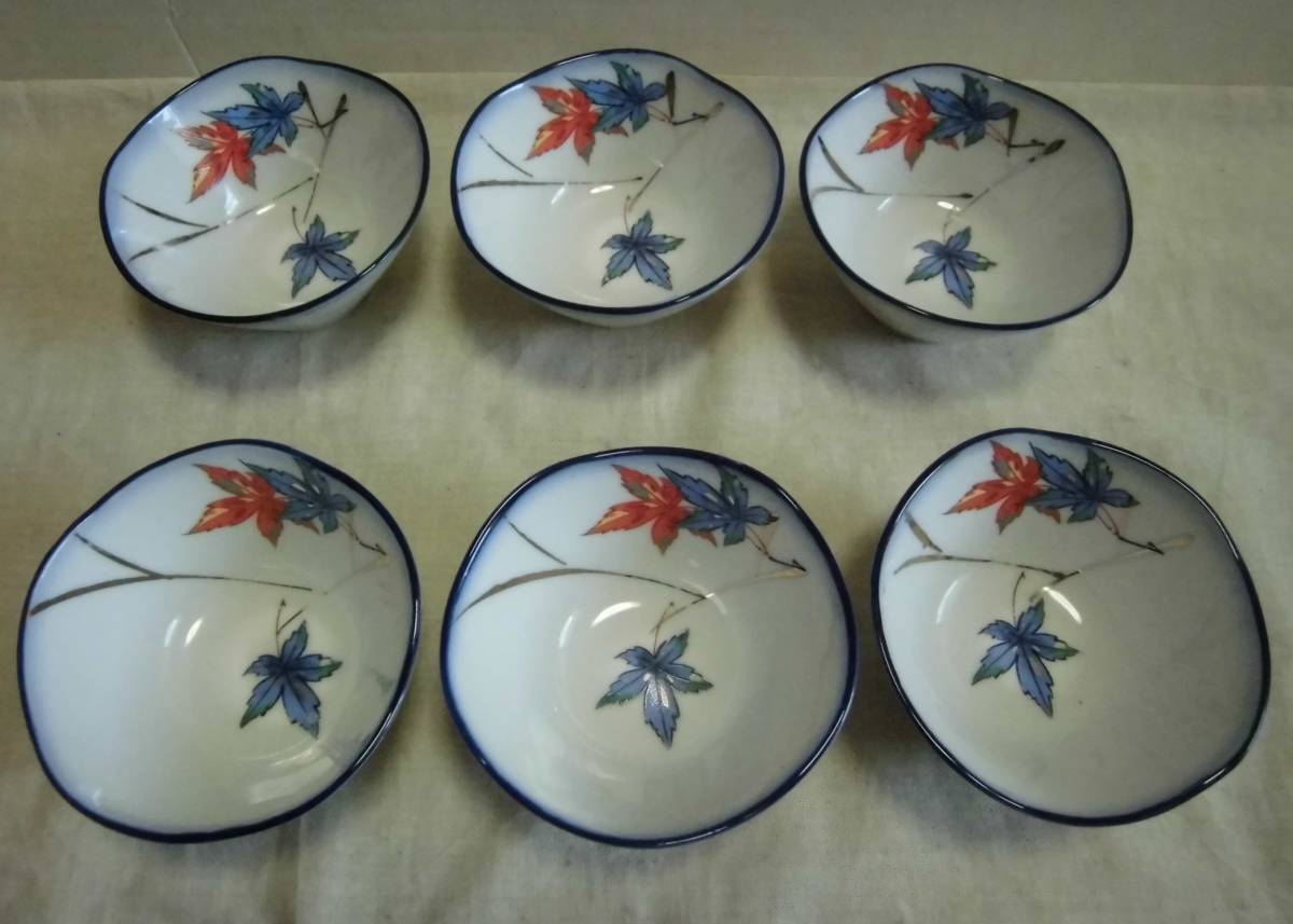 - 小鉢 紅葉柄 6客 金彩 色絵 陶器 工芸品 食器 レトロ アンティーク