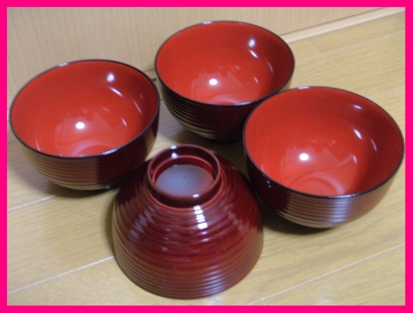 - 【送料無料:お椀:会津塗:3個:日本製】★「筋目:赤溜内朱」★漆器:電子レンジ・食器洗浄機対応:3客:No7:7948 食器 汁椀 小丼 小丼ぶり