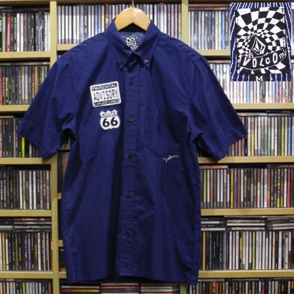 - VOLCOM STONE ボルコム 90's スケート デザイン ワッペン 刺繍 ロゴ 半袖シャツ ワークシャツ 紺 M 美品