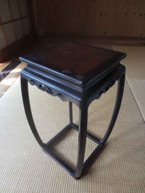 - 【艸】 高卓 葡萄杢天板 唐木卓 38センチ 盆栽卓 香炉台 中国古玩 23sep1