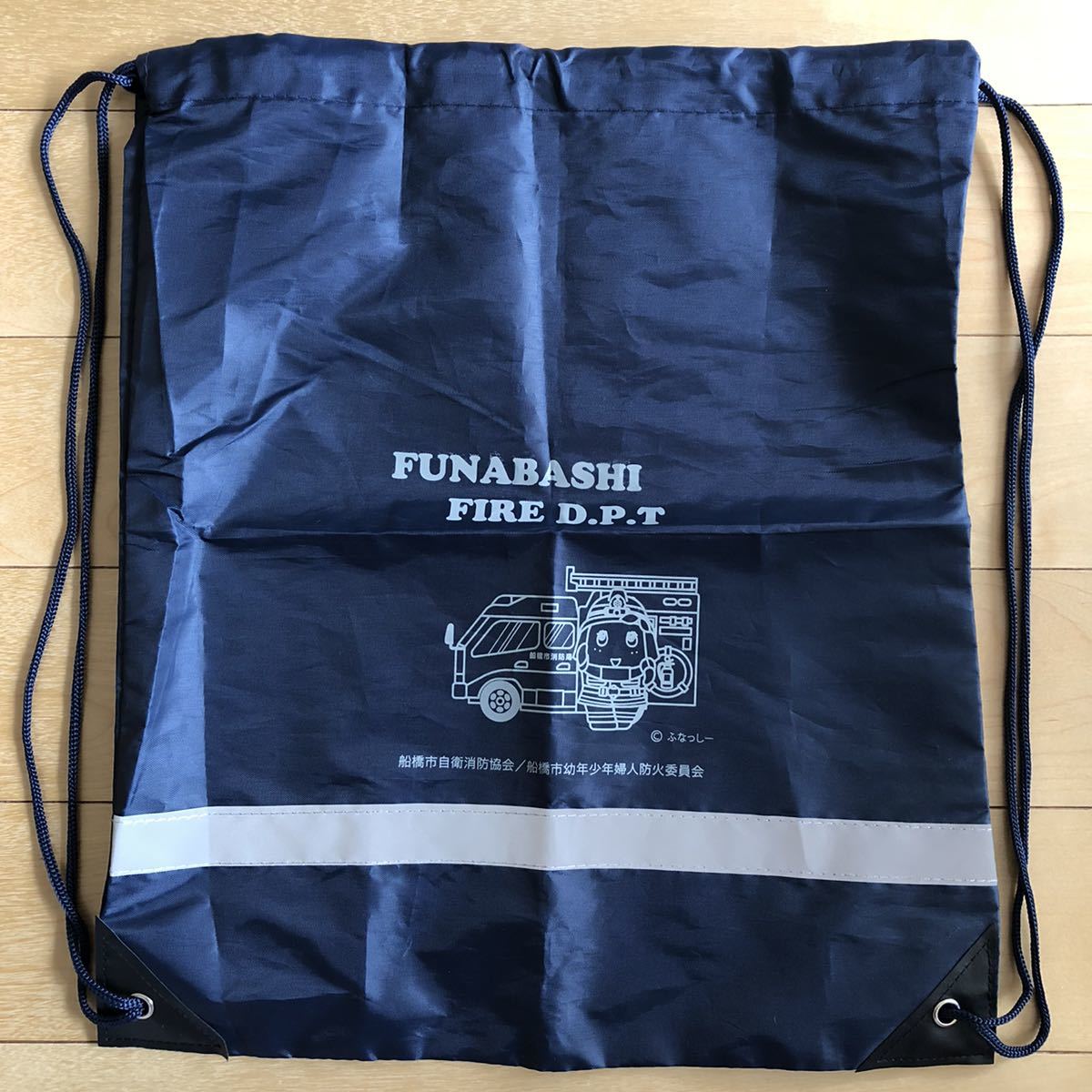 - 送料込み 折れシワ多数有 レア 非売品 ふなっしー 船橋市 自衛消防協会 船橋市消防局 リュック バッグ ネイビー 紺色 デイパック 巾着