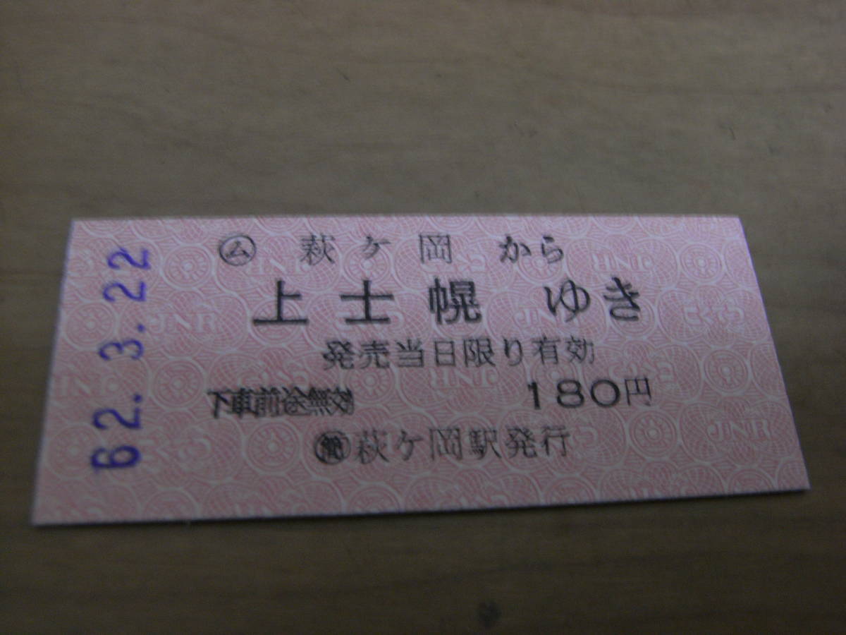 - 士幌線 ム萩ヶ岡から上士幌ゆき 180円 昭和62年3月22日 簡 萩ヶ岡駅発行 ●営業最終日
