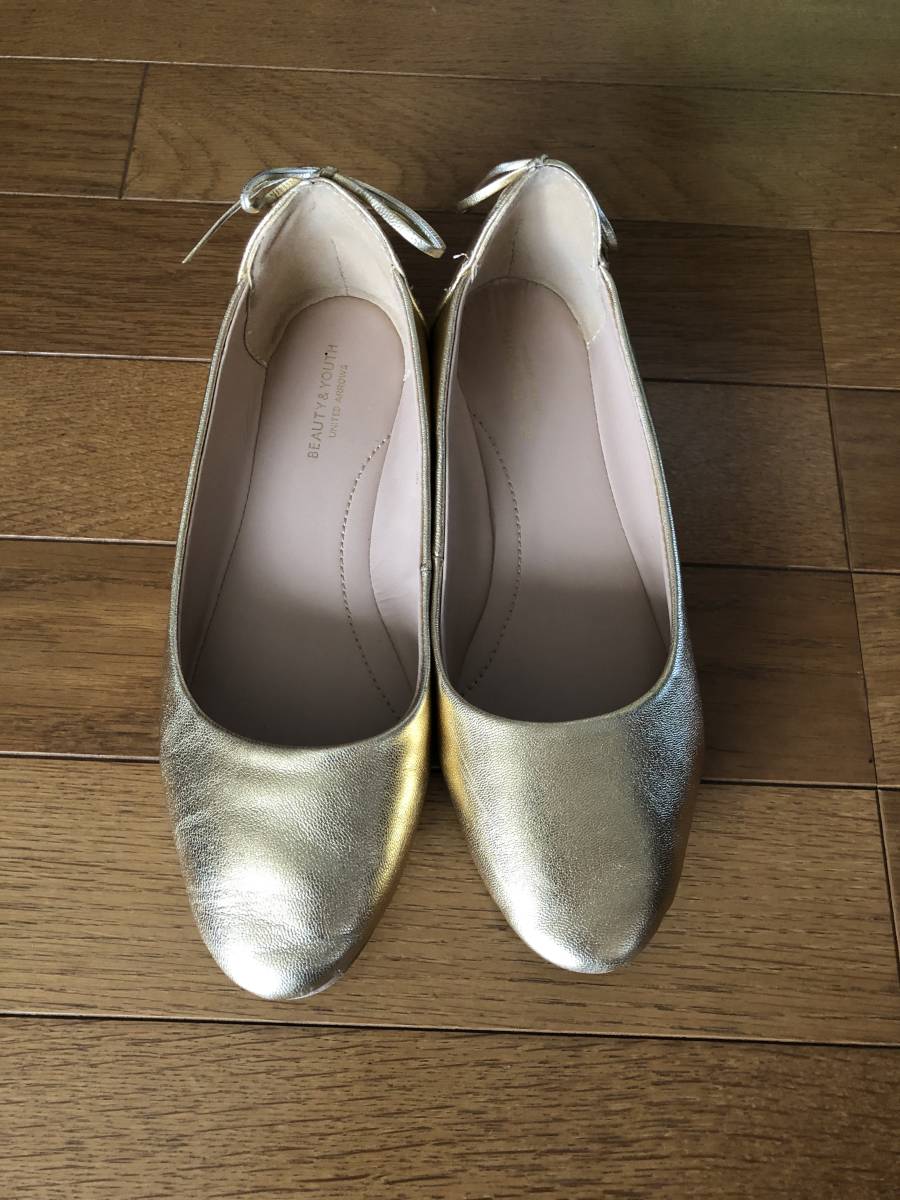 - beauty&youthビューティー&ユース・ゴールド色レースアップバレエシューズ・36
