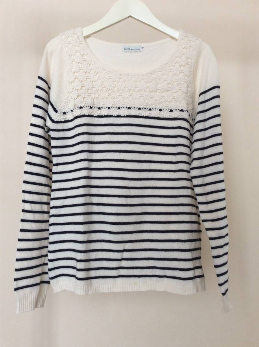 > ★ 美品 earth music & ecology お花アップリケ付き 薄手ニット Mサイズ ★
