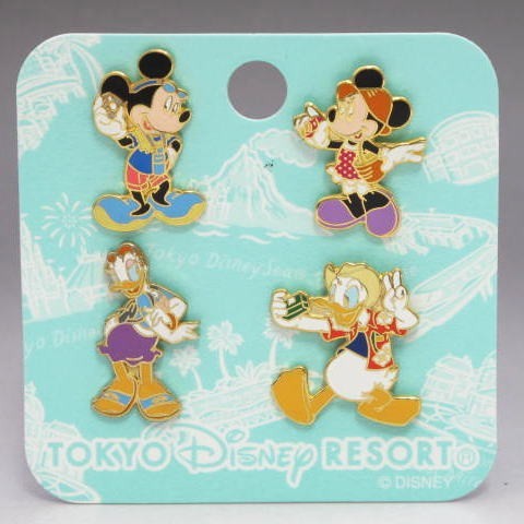 > ディズニー ミッキー&ミニー&ドナルド&デイジー 東京ディズニーリゾート4ピンセット 2001年 旅行者(ゲスト)風のピン TDL 新品