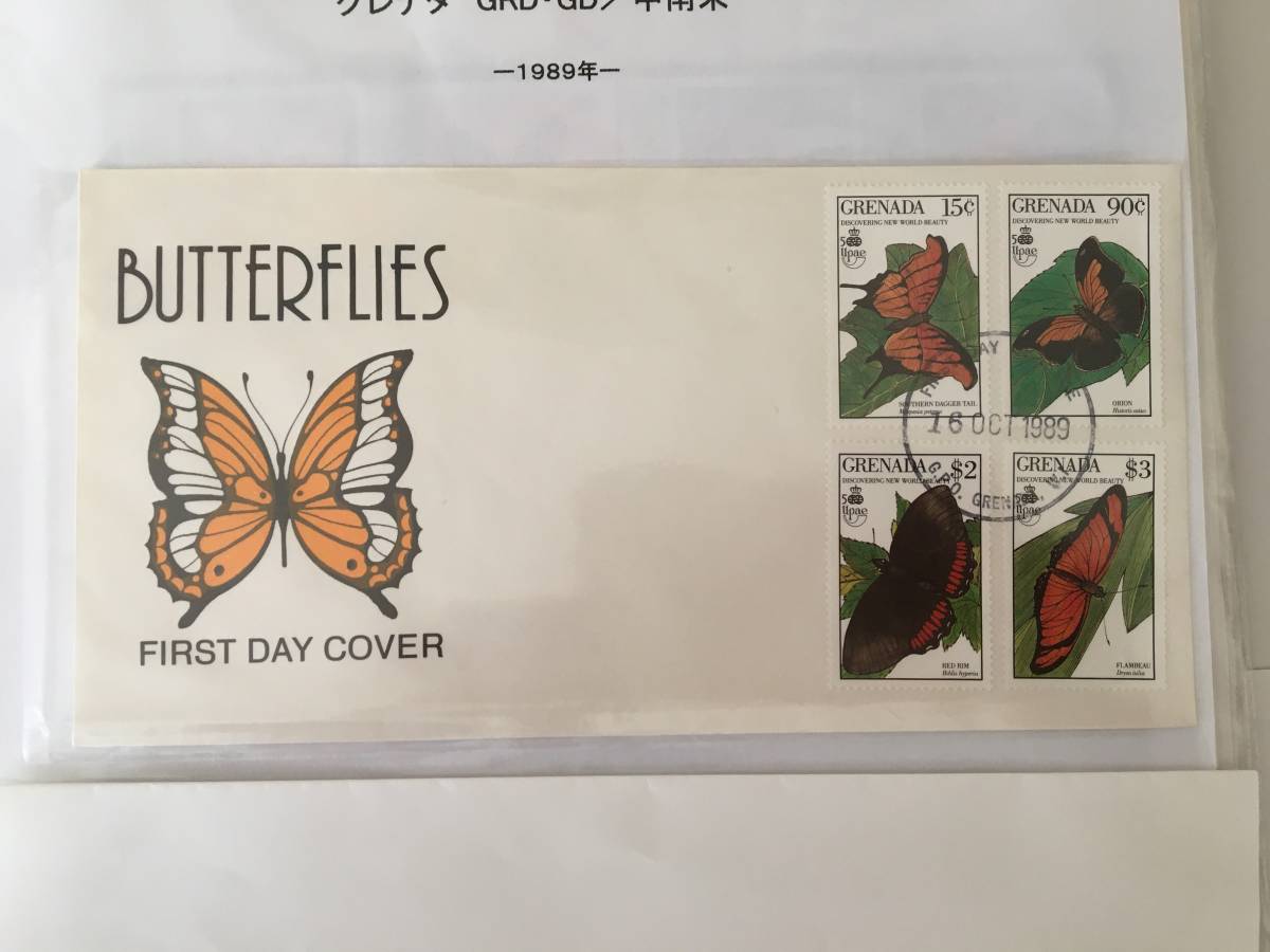 - 切手:昆虫・蝶/グレナダ*1989年*初日カバー*