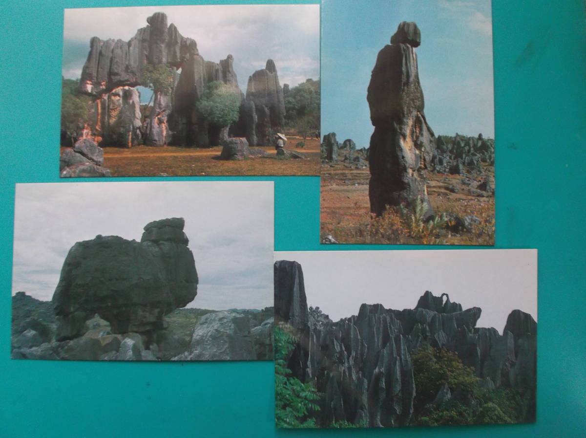 - 昔の絵葉書 6枚組袋付 中国大陸 石林 石屏風 漫歩従容 麒麟 雙鳥渡食 石林全景 望峯亭 12枚組の一部