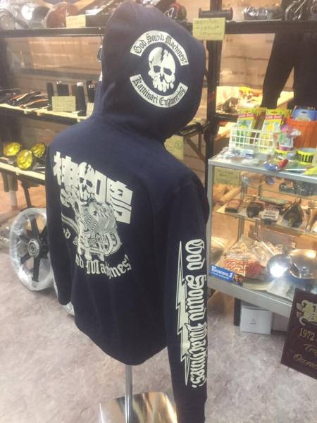 > 神鳴オリジナル GOD SOUND MACHINES!SKULL パーカー 神鳴エンヂニアリング 750SS 500SS 400SS 350SS 250SS KH250 KH400 Z400FX Z1 Z2