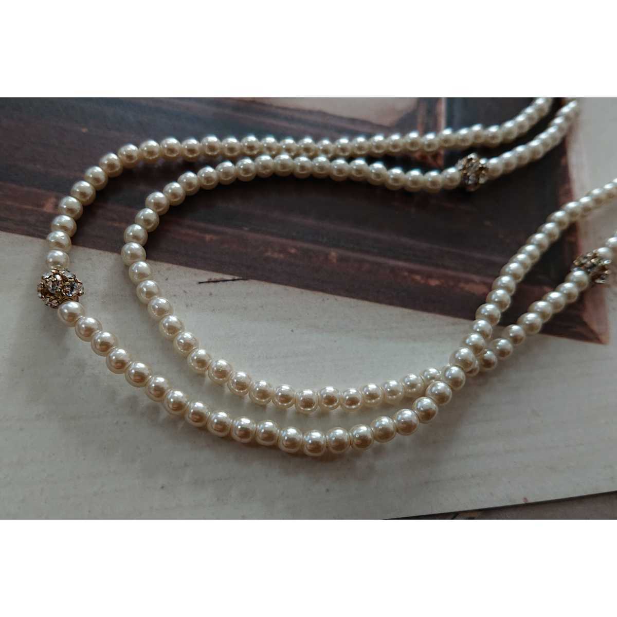 - □ ミニパールビジュー&ラインストーンボールの2連ネックレス□