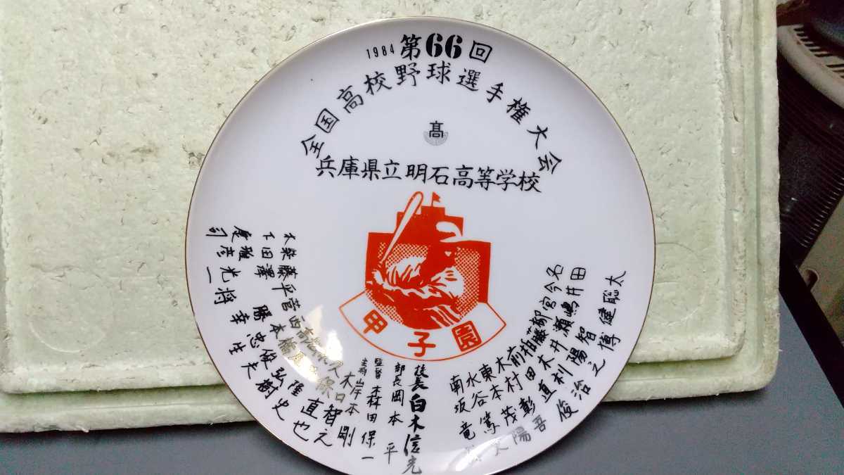 - 1984年 第66回 全国高校野球選手県大会 明石高校野球部 甲子園出場記念 絵皿 甲子園 画皿 当時もの 古い
