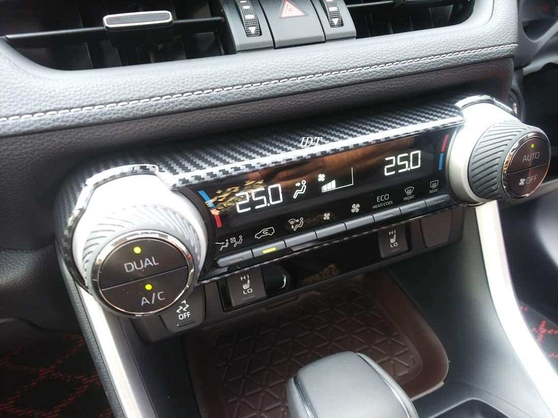 - 新型 RAV4 XA50系 カーボン エアコンダイヤルカバー ガーニッシュ インテリアパネル モール カスタム パーツ フロント インパネ モニター