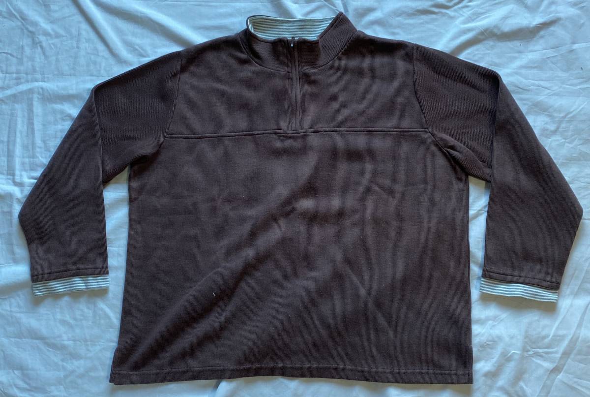 - 長袖ジップセーター 3Lサイズ Le Fumoio 薄ブラウン系 ストレッチ■■古着
