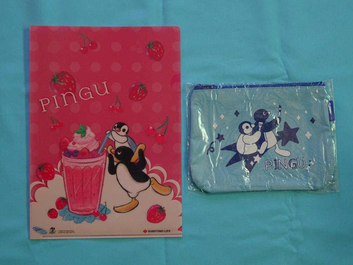 - 住友生命 ノベルティーグッズ ピングーのクリアファイルと文房具用ポーチ
