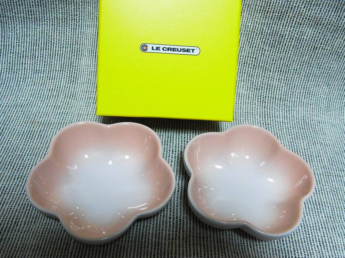 - 新品ル・クルーゼ限定フラワーピンク 取り皿サラダに 2枚セット きれいで愛らしい色です!大皿とセットになります!