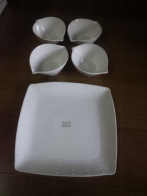 - .未使用品 皿 25cm、小鉢4点 14*11*5.5cmくらい 箱に汚れ、傷あり