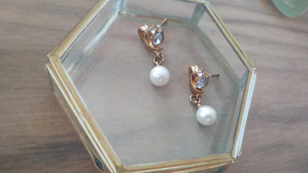 - □エレガントな印象□パールビーズ&クリアストーン×ゴールドカラーのピアス□