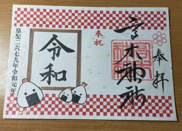 - ◎◆高木神社◆「令和」改元記念 御朱印 令和元年(2019年)