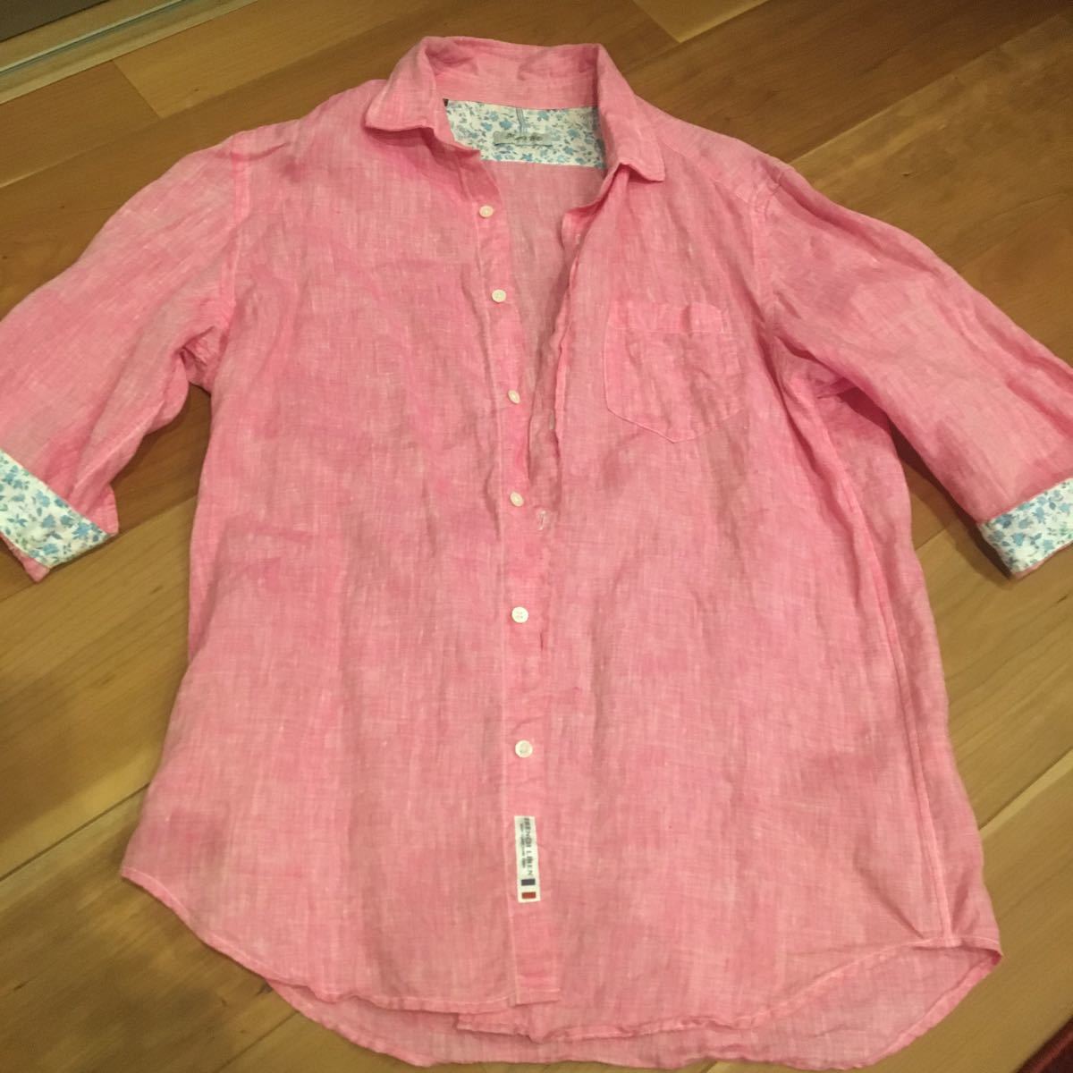 - ピンク色 シャツ Mサイズ 鮮やか 夏 夏物 ピンクシャツ 7分袖 美品 綺麗 キレイ 夏