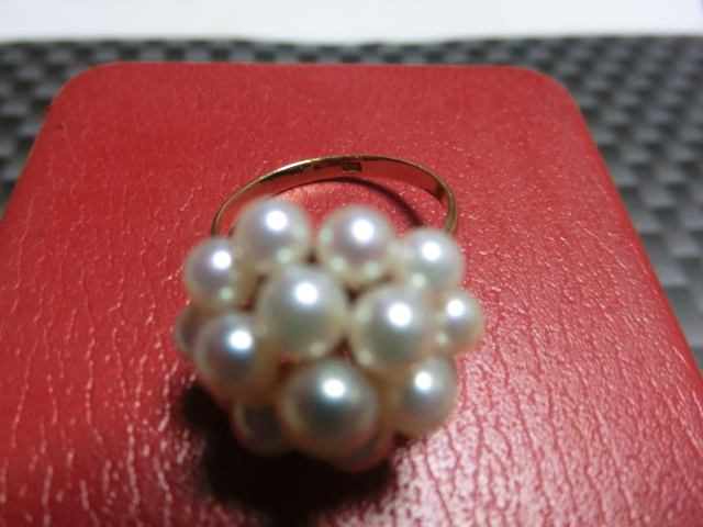 - ■超美品:K18小さな真珠が18個の指輪 Tm602