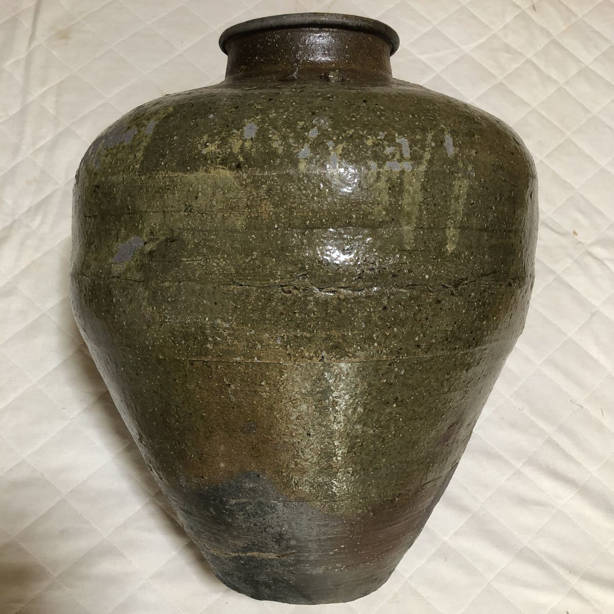 > 古信楽 .信楽焼 .鎌倉期.室町時代の四つ耳の茶壷.裏打ち.して居ますのでヒビが有りますが水漏れは無いです.壺の景色.姿は最高です。