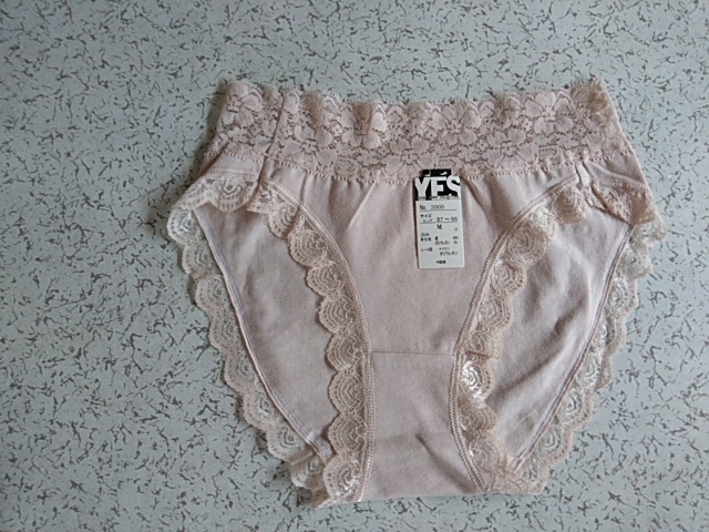 - ベージュ地ウエスト花レース足口レース仕様のショーツ M