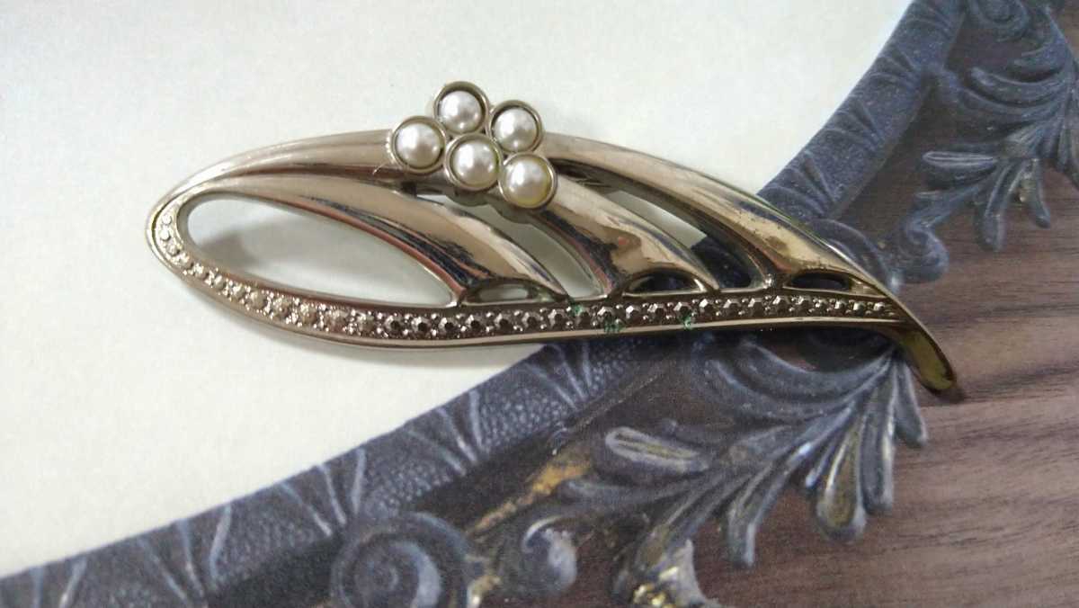 - □訳あり□シルバーカラー×パールビジュー・ブローチ□日本製□