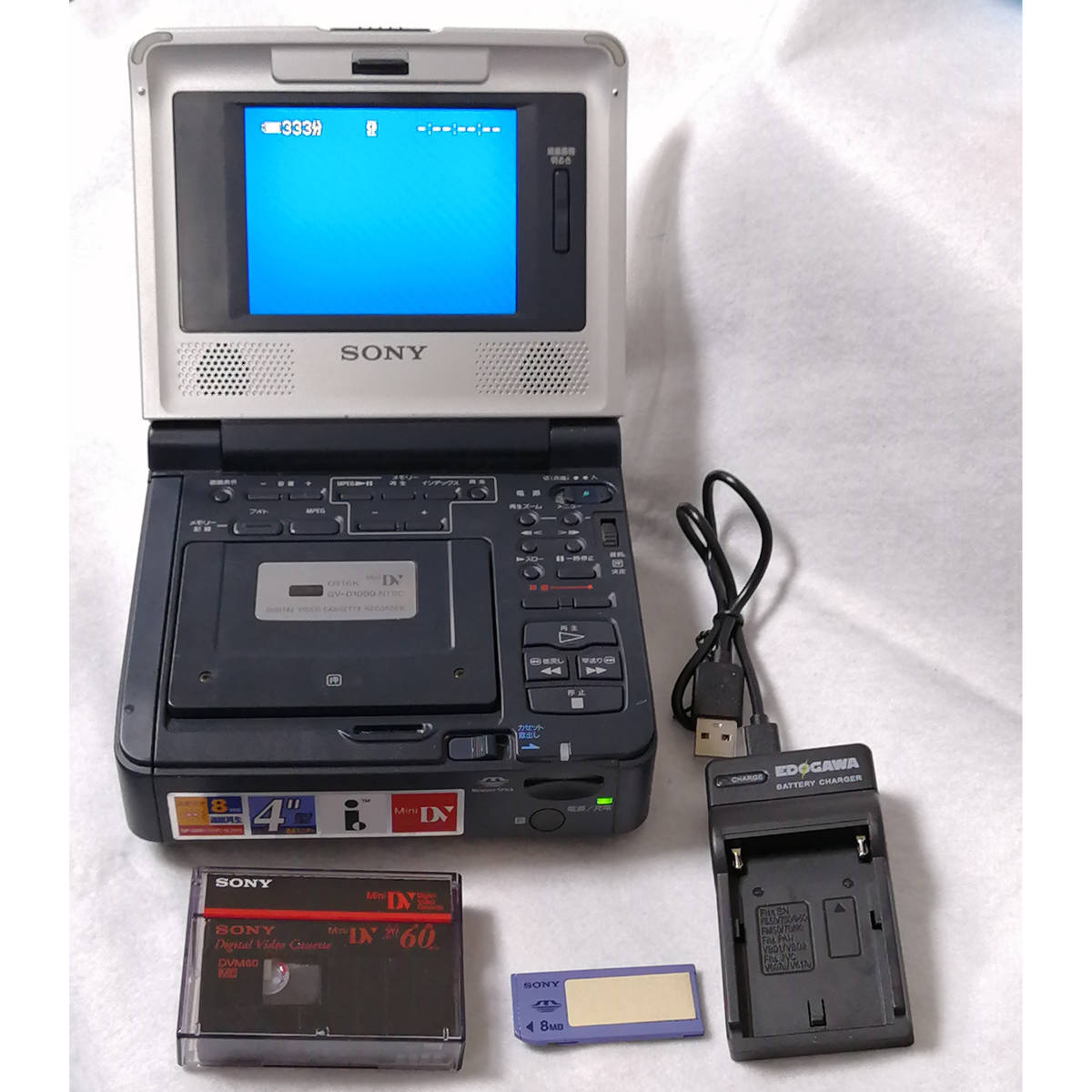 > 【通電確認済み】SONY・ソニー製 MiniDVビデオデッキ (GV-D1000) / 純正バッテリー(NP-QM91D) x1個付き / 除菌済み