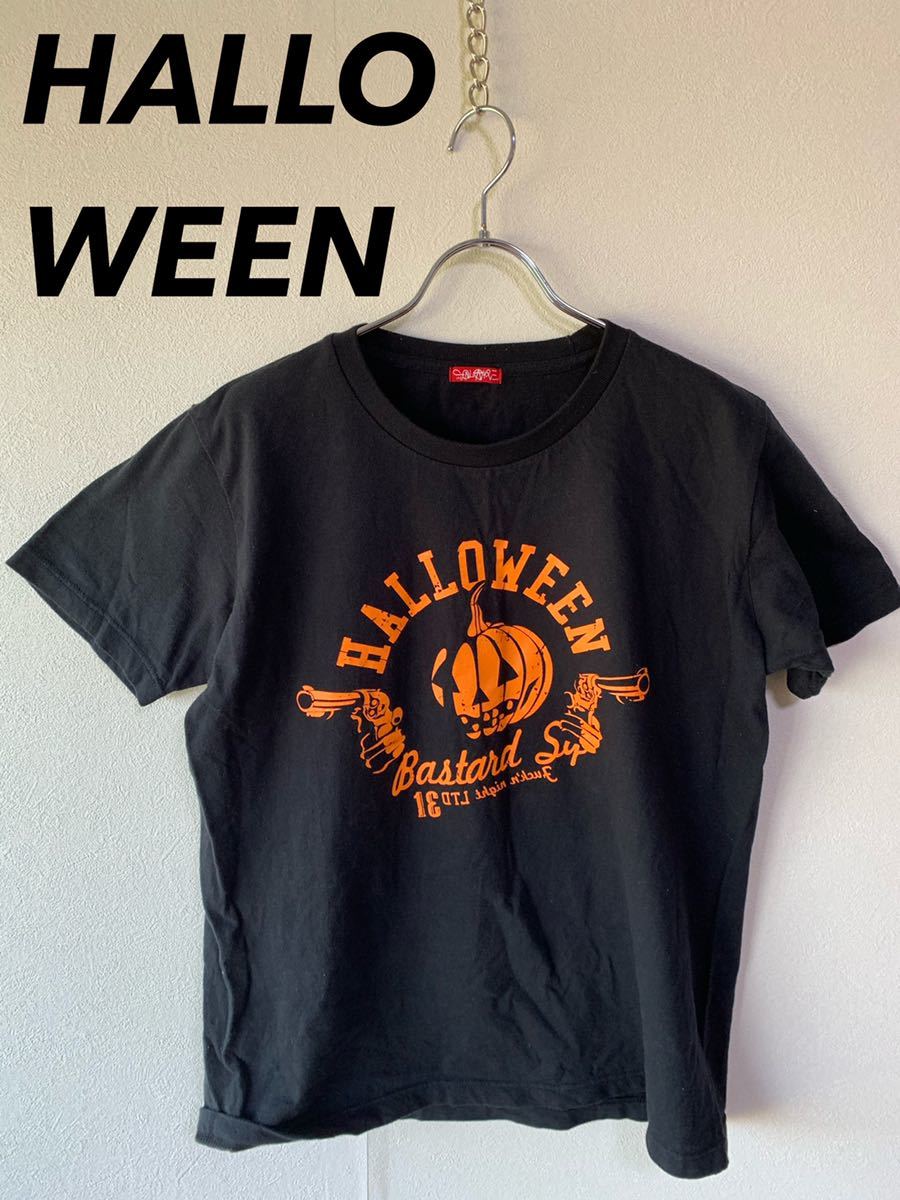 - 【人気】HALLOWEEN/ハロウィンシャツ 黒/ブラック かぼちゃ (K46)