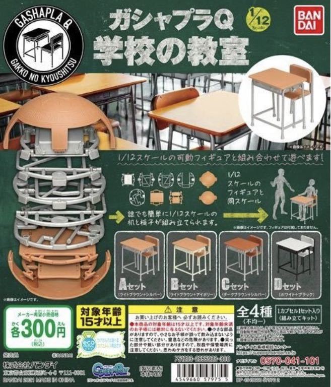 - ★ミニチュア★バンダイ ガシャプラQ 学校の教室 ガチャガチャ 全4種類フルコンプ