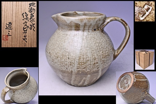 > 島岡達三 ★ 地釉象嵌縄文ピッチャー ★ 共箱 ★ 希少 ★ 益子焼 人間国宝 ★ 濱田庄司 師事 ★ 水差し ★ 汁注ぎ汁次