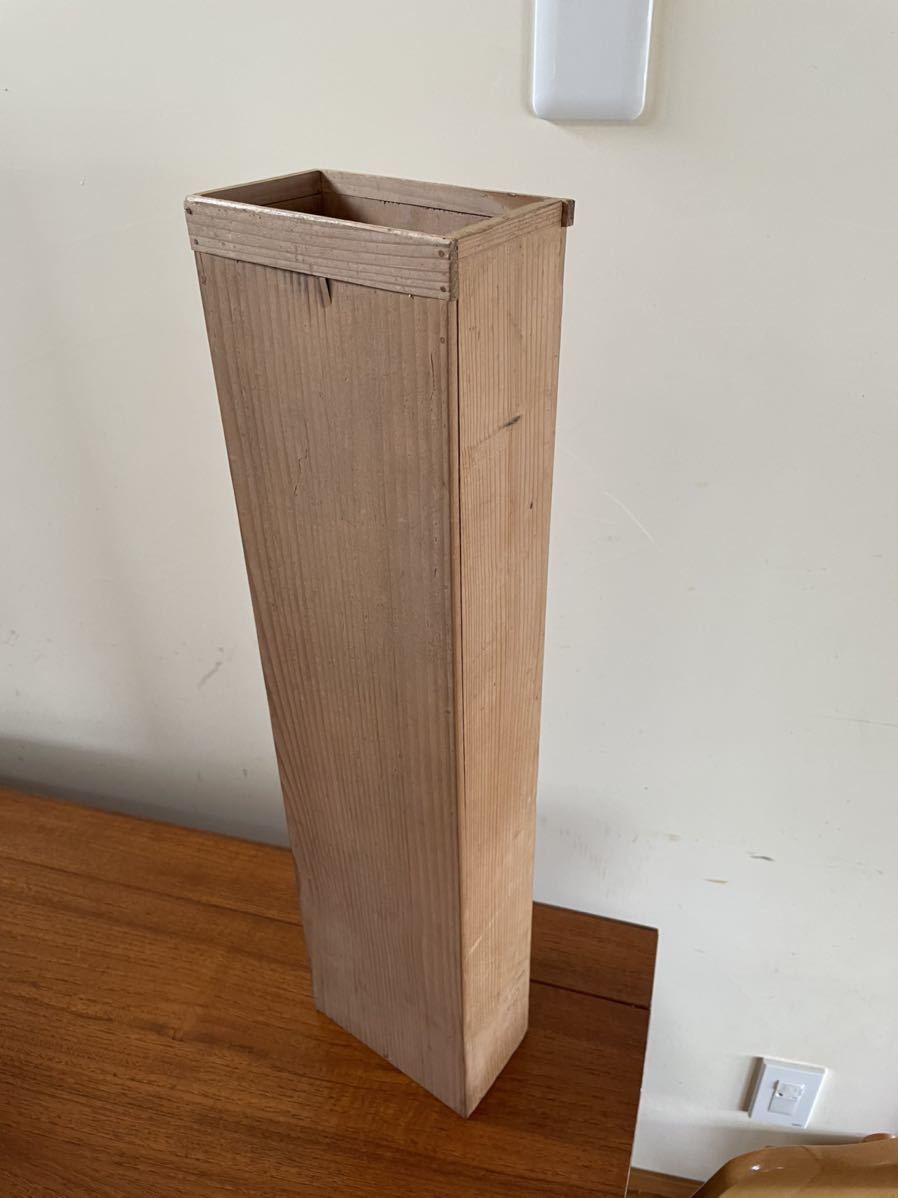 > 木箱桐箱収納、木釘、日本伝統の木組み箱 収納h61w14.5d7.8cmレトロ収納ボックス 釣具傘ゴルフ収納 古物アンティーク木箱骨董