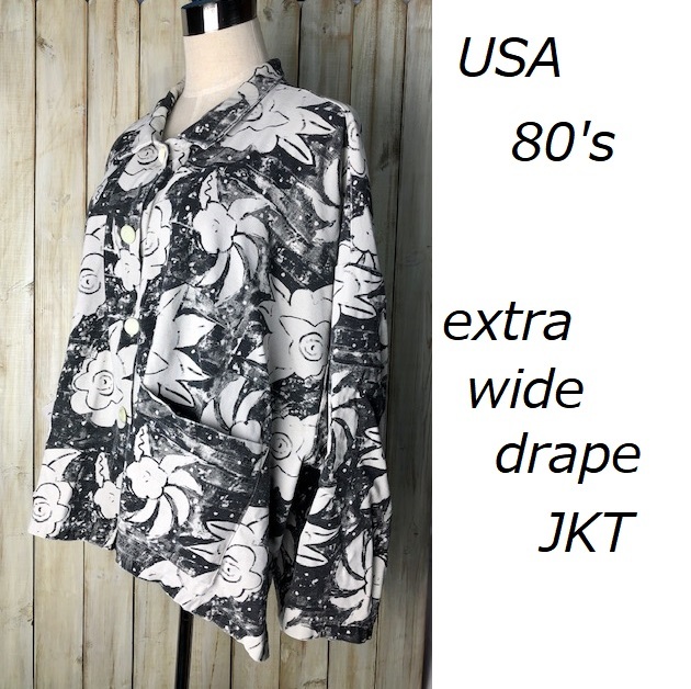 > USA古着 80s USA製 総柄 ワイドドレープ テンセルジャケット XL オールド ヴィンテージ アメリカ古着 春夏 黒×グレー ●68