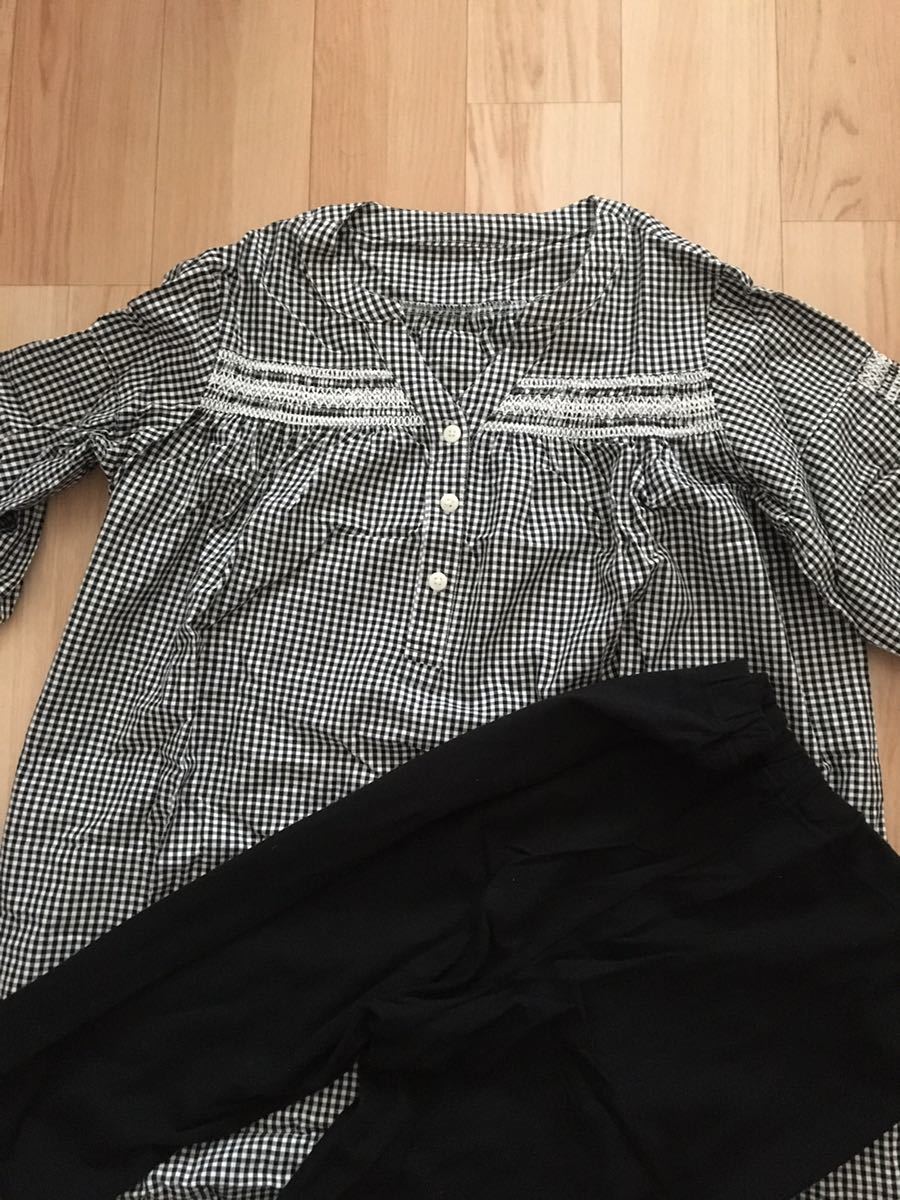 - ★ マタニティ ルームウェア M ★plumpm.★七分袖★入院準備 出産準備 産前 産後★ギンガムチェック 黒 ブラック★