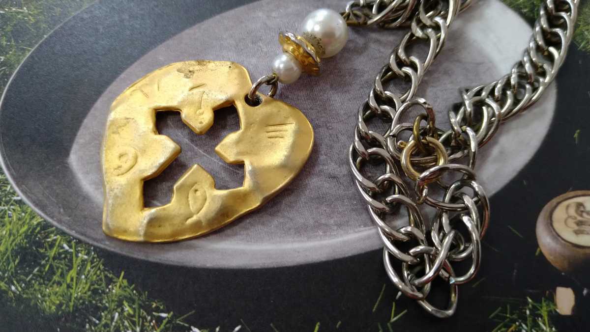 - □存在感□マットゴールドカラー×ハート&クロスモチーフ・シルバーカラーチェーンネックレス□