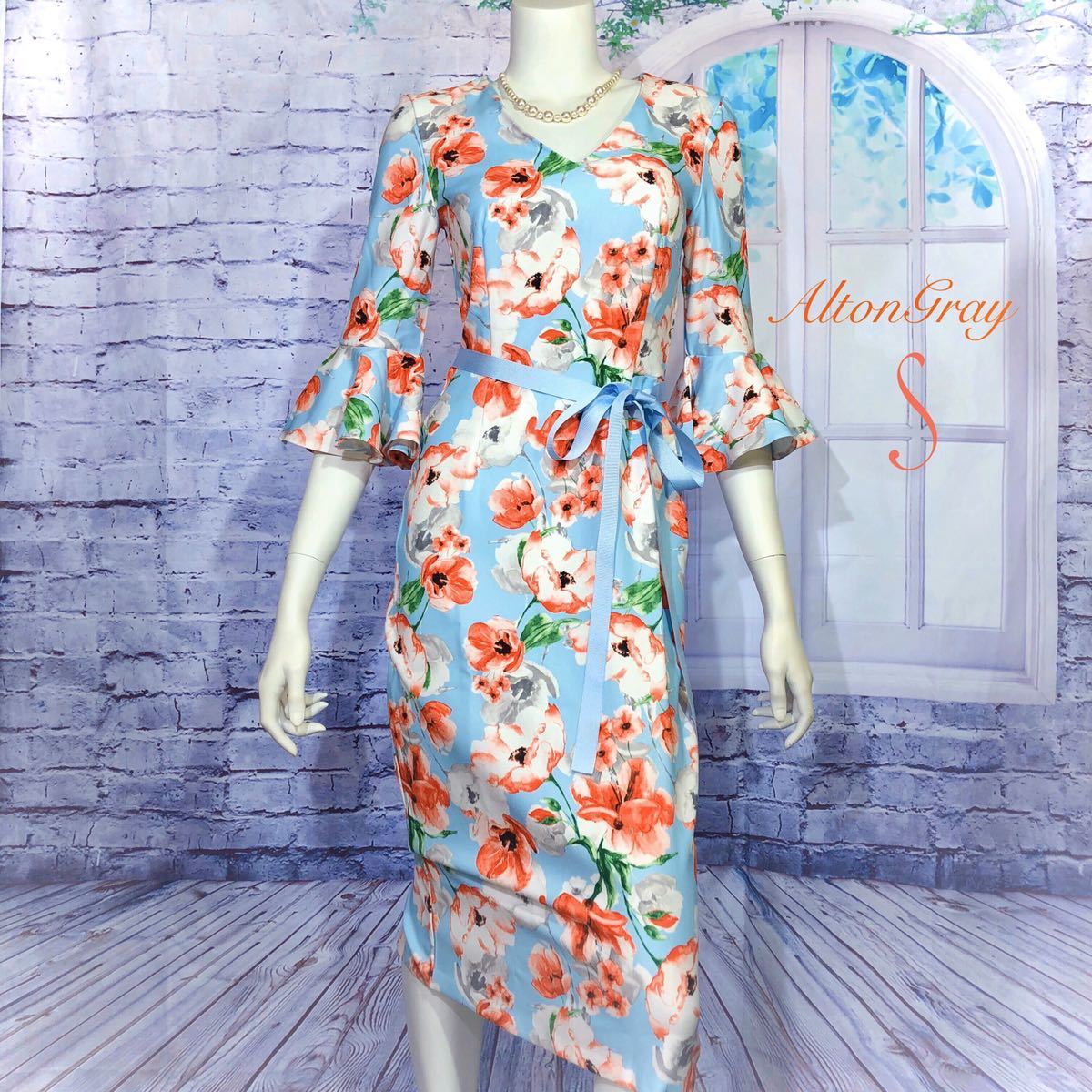 - 新品 ALTON GRAY アルトングレー ライトブルーレッドボタニカルワンピース S