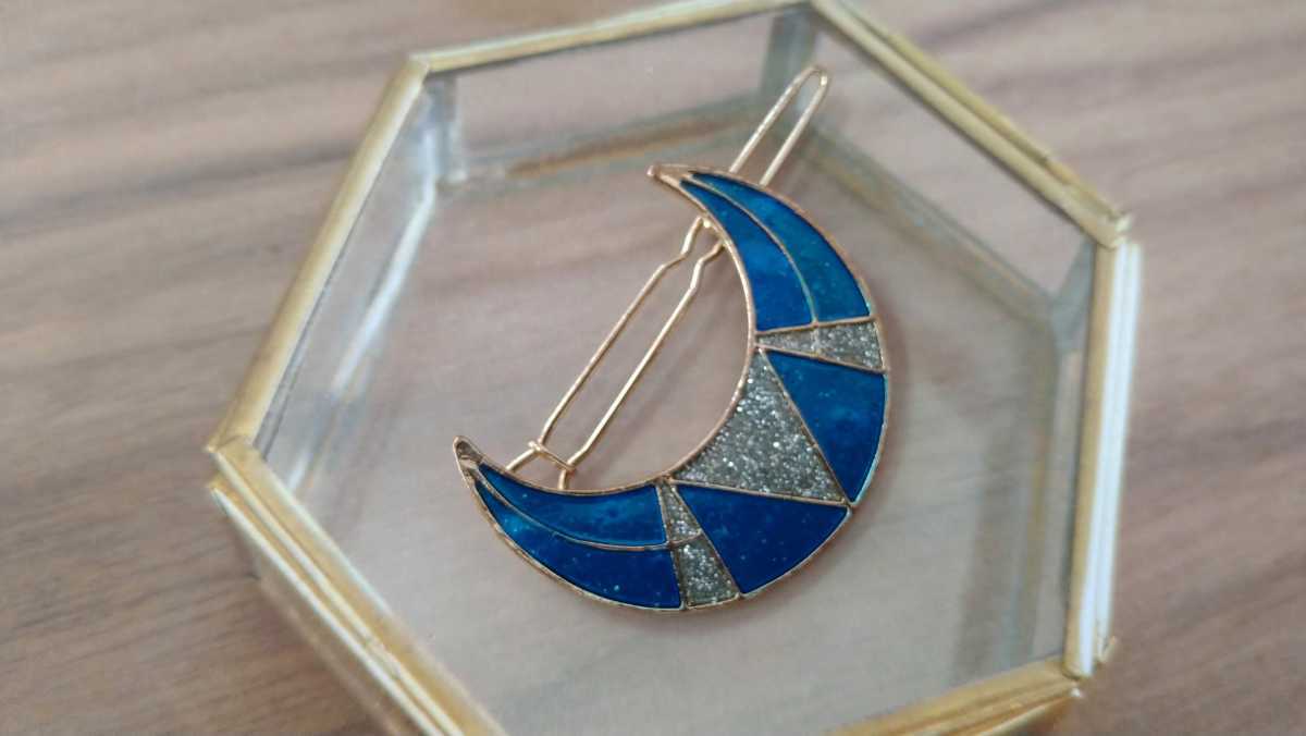- □月モチーフ・ラメ入青×シルバーカラー ヘアピン□