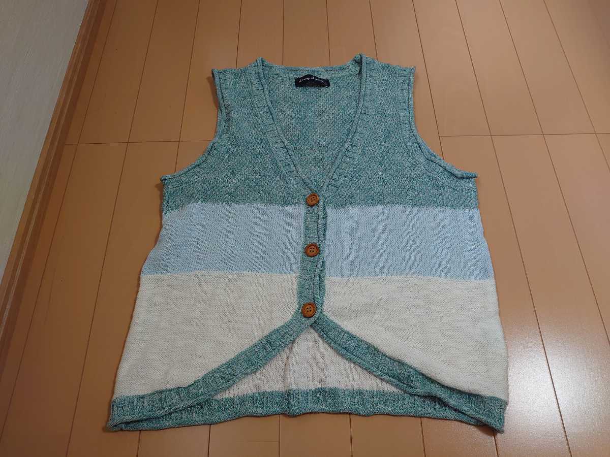 - ドラッグストアーズ ニットベスト 水色 3大きめサイズ 肩幅35脇下94丈54センチ