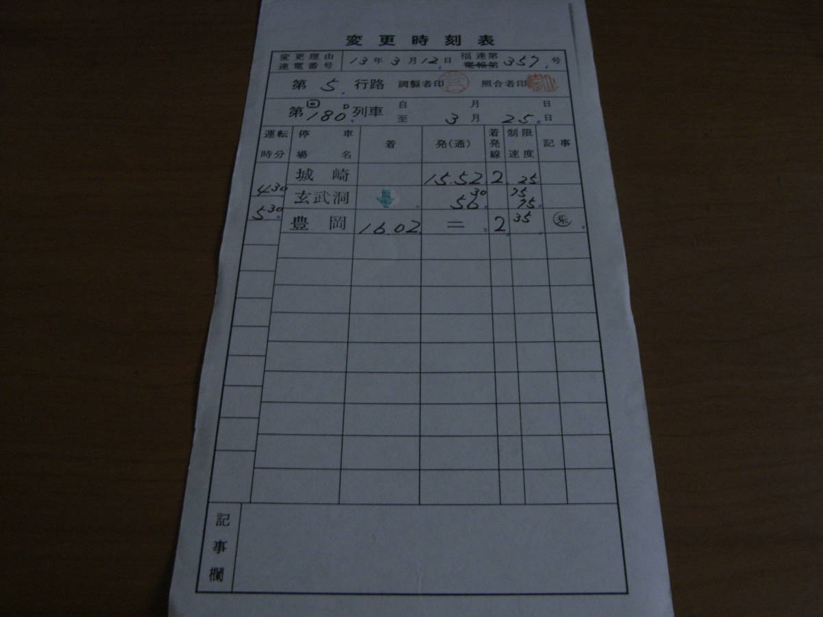 - 山陰本線 変更時刻表 回180D列車 城崎-豊岡 ●スタフ・運転士時刻表